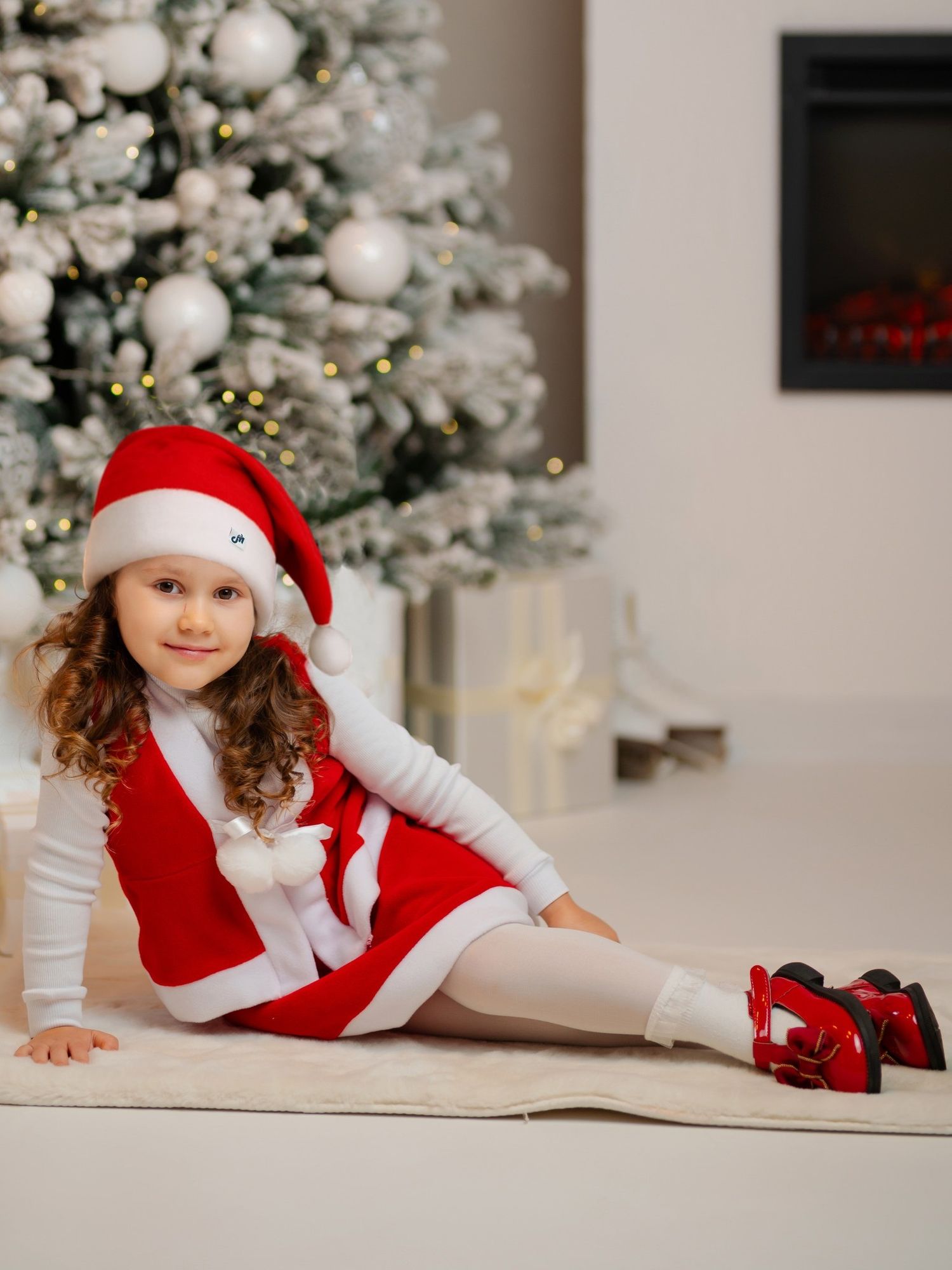 A festive, delicate, and comfortable outfit, perfect for school performances, photo sessions, and special Christmas moments. The set includes a vest, skirt, and Santa hat.                                          Perfect for little holiday stars!