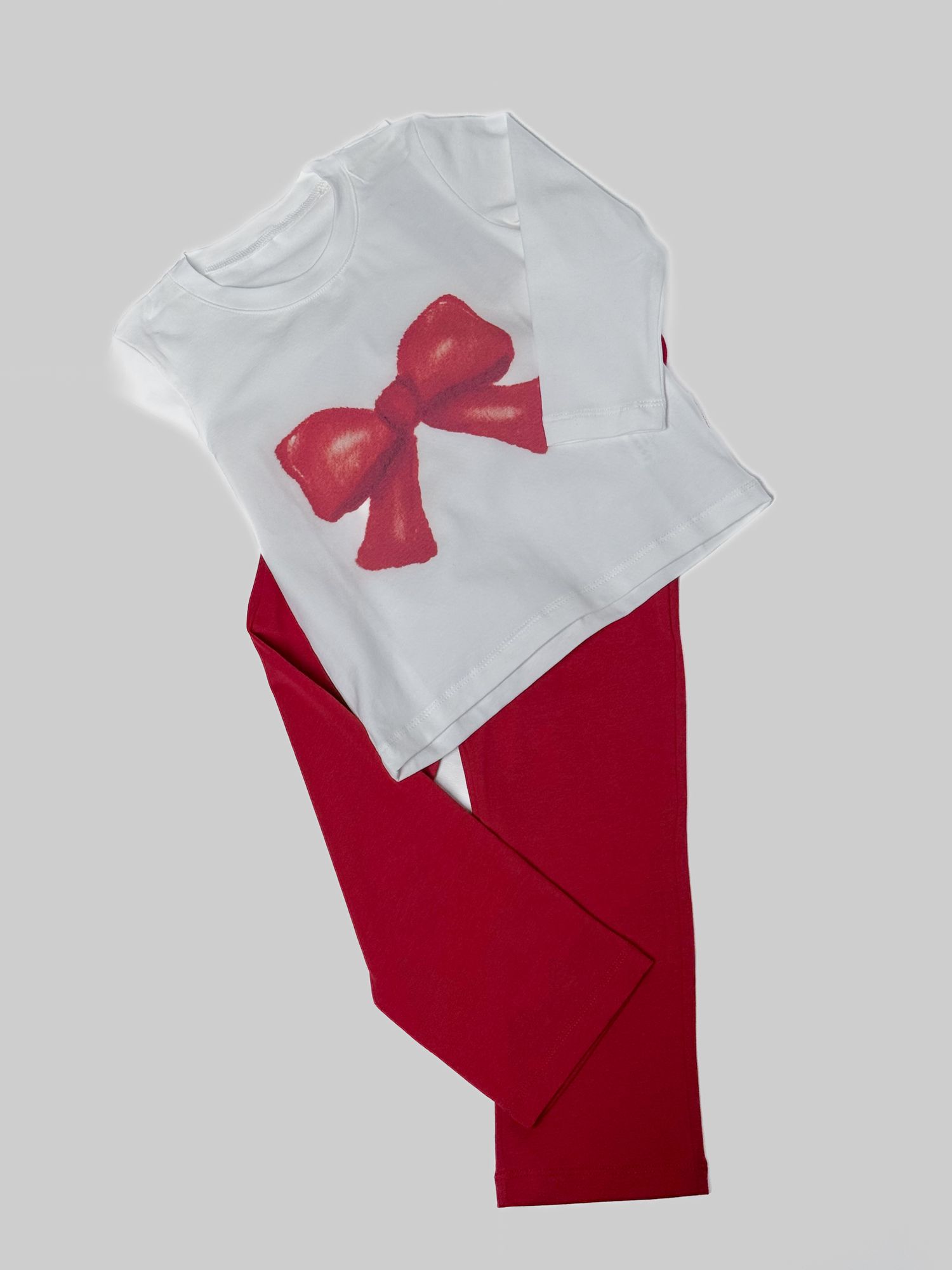 Детская пижама из мягкого и приятного к телу хлопка. Футболка с красивым принтом бантика и удобные брюки. Комфортная и практичная для сна и отдыха.