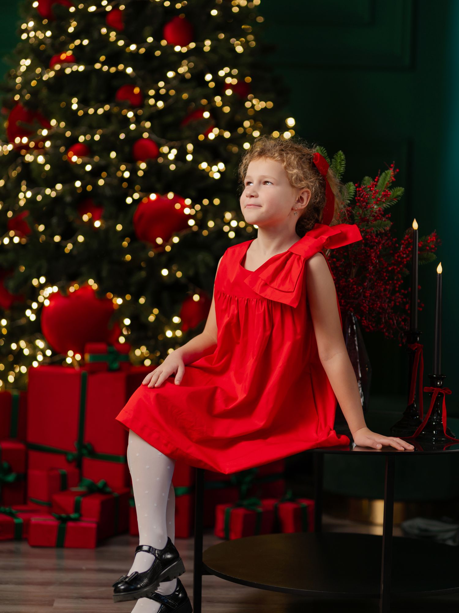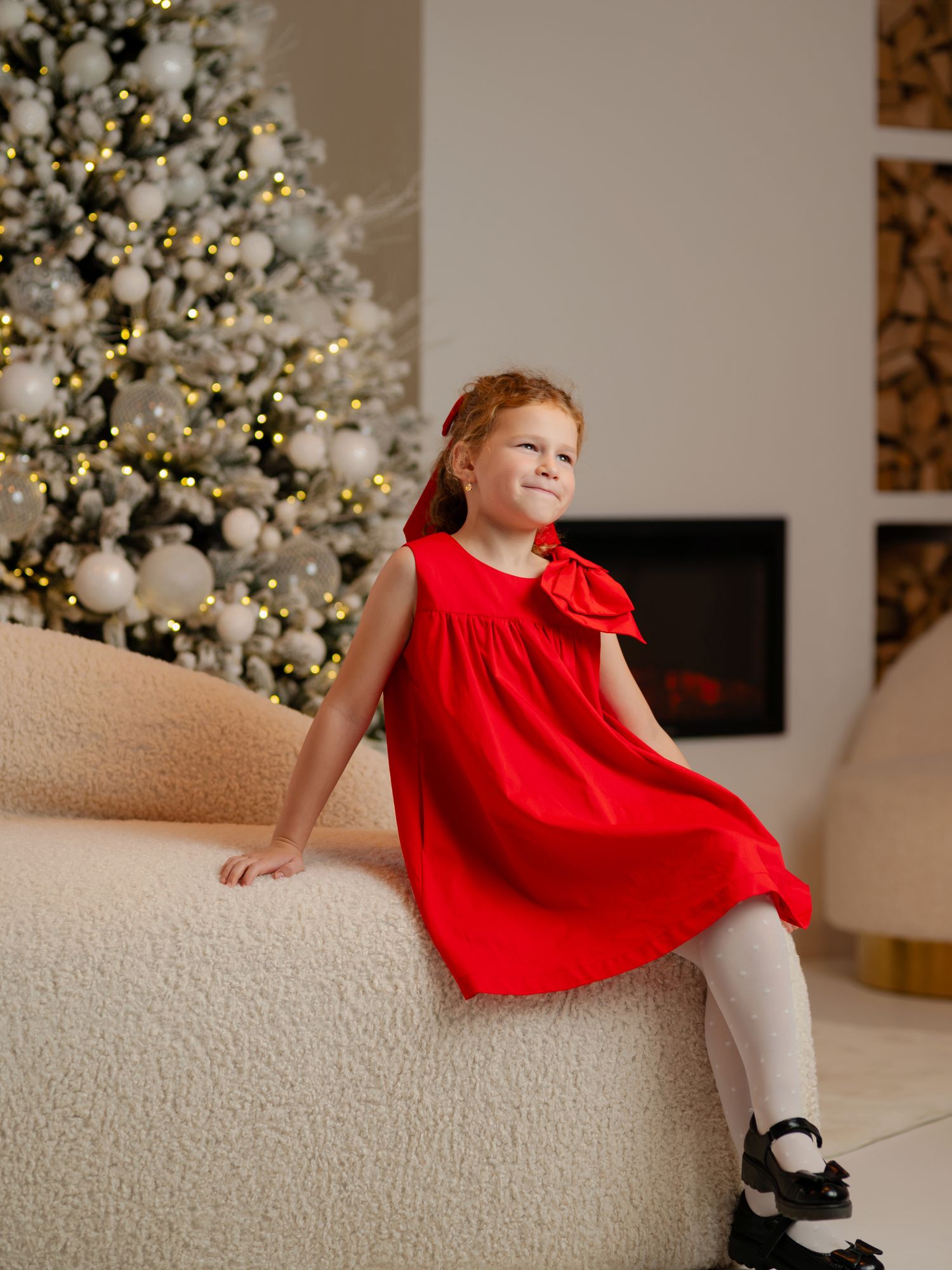 Праздничное красное платье, идеально подходящее для праздников и особых случаев. Свободный крой с элегантным бантом на плече, выполнено из комфортного и приятного к телу материала. Идеальный выбор для праздничного образа.