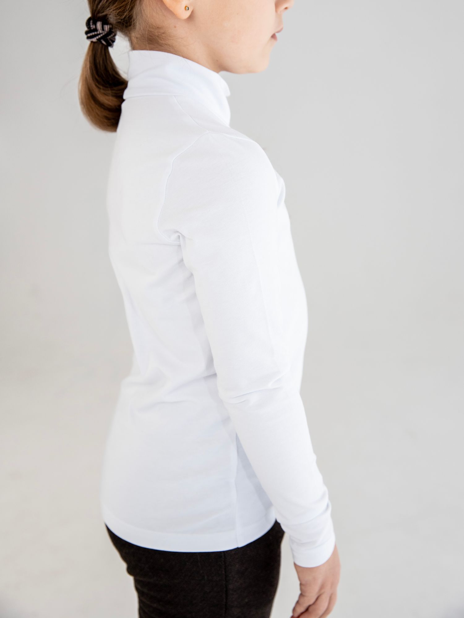 Водолазка изготовлена из 95% хлопка и 5% эластана — это эластичный материал высокого качества, мягкий, приятный на ощупь и устойчивый к многочисленным стиркам. Водолазка идеально облегает тело, имеет средней высоты удобный воротник. Подходит для осени, зимы и весны. Легкая и простая в сочетании с различными нарядами, эта водолазка создана специально для обеспечения комфорта активного ребенка. Универсальная модель (унисекс).